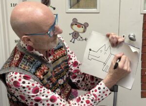 We were thrilled to be able to take Nick on a visit to our Literacy Lab at St James’ Primary school, Bermondsey where he read from one of his stories, chatted to the children about what they enjoy in Literacy Lab and looked at examples of the children’s work. He then taught them to draw a lion and a shark, and the children’s drawings inspired Nick to adapt his drawings and he added eyelashes to his lion! The children proudly showed Nick their work that they have done using ‘You Choose’.